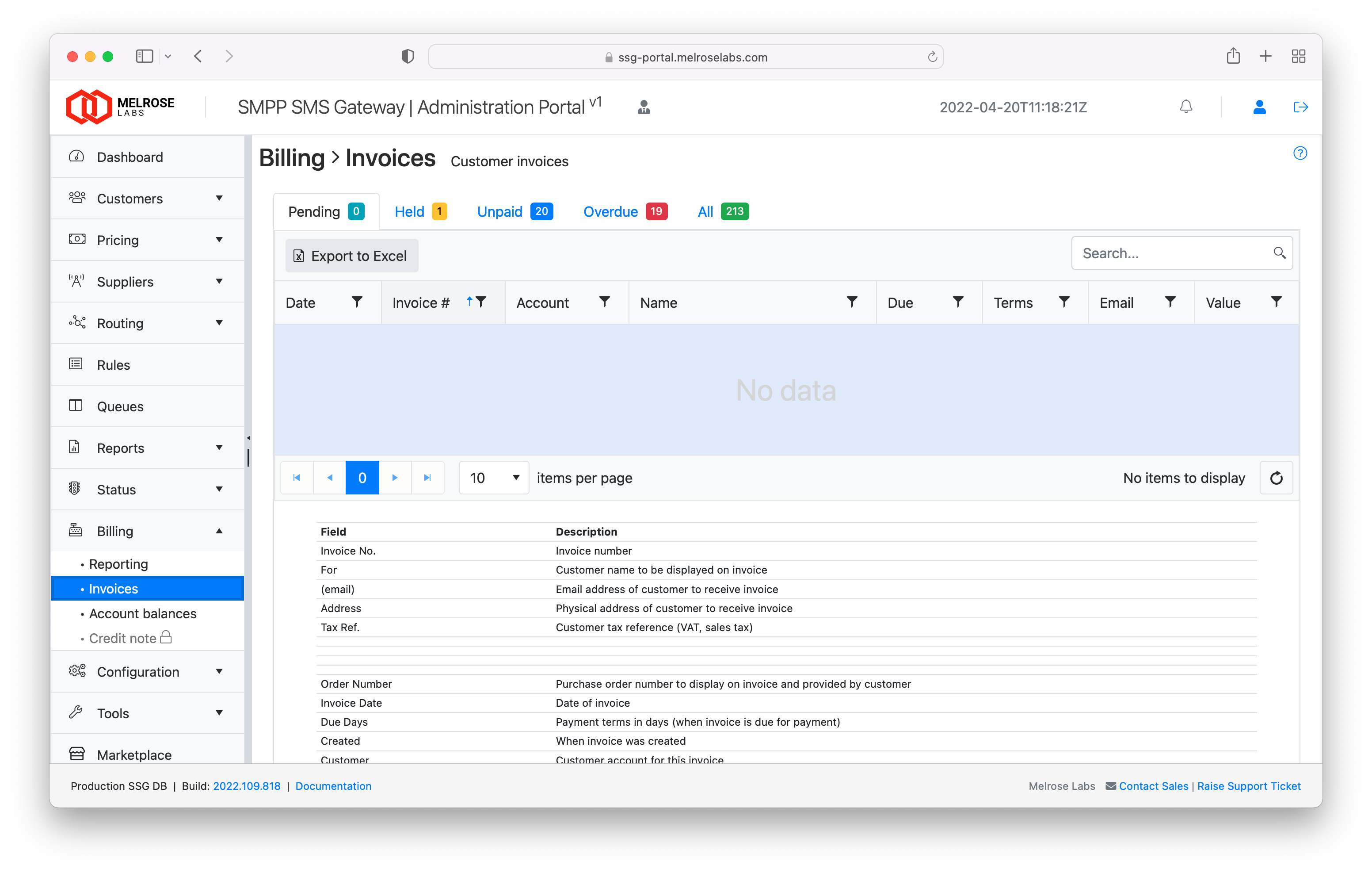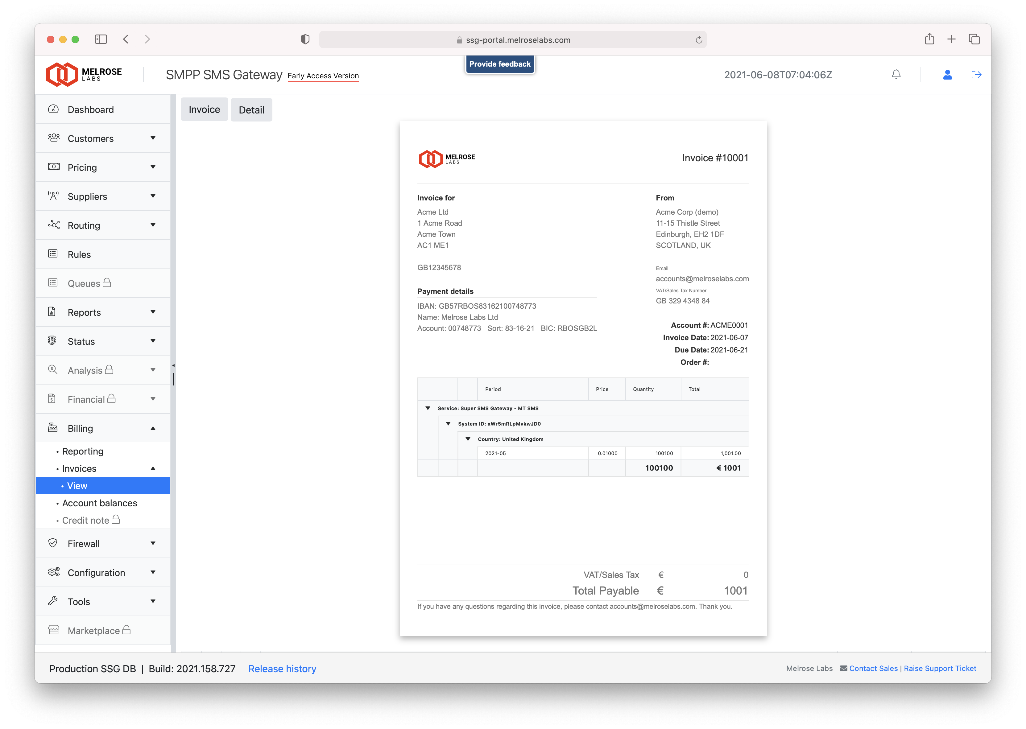 You can use your SSG instance to issue invoices to your customers for the SMS messages they send.