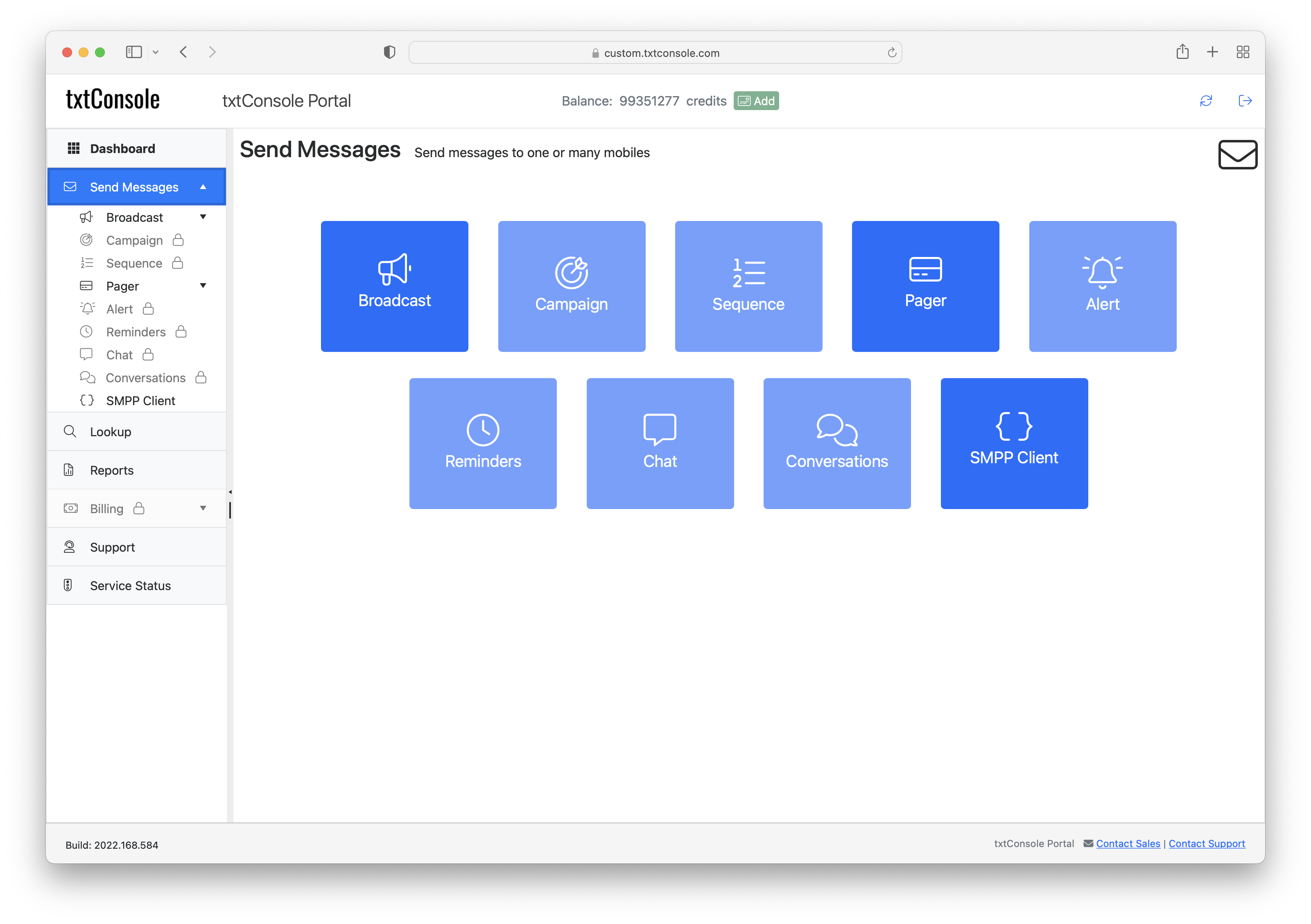 See the example customised txtConsole portal at https://abcsms.txtconsole.com.