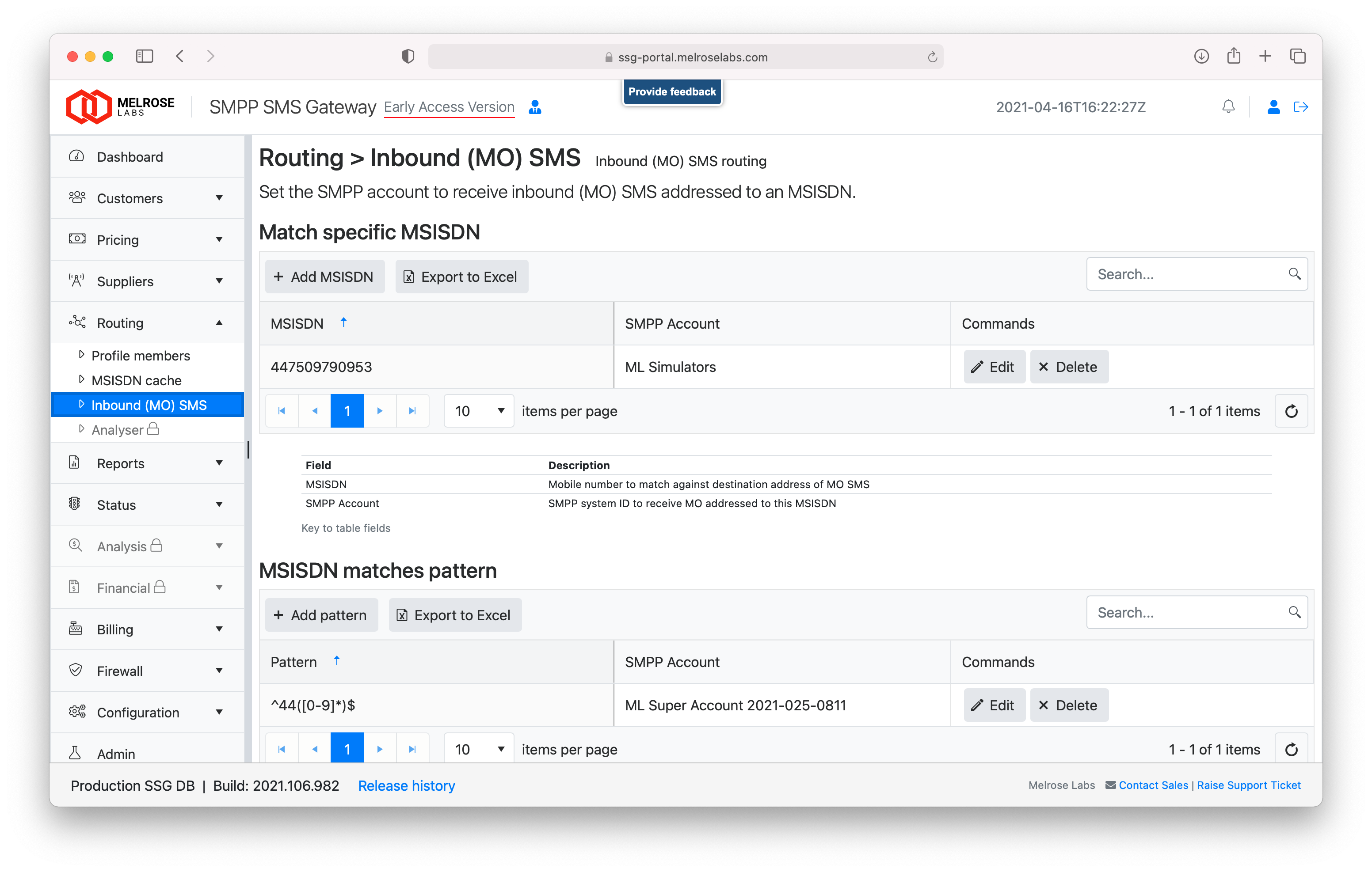 When mobile originated (MO) SMS is received from an SMSC by an SSG SMSCGW node, the configuration in Routing > Inbound (MO) SMS is used to identify the SMPP account for the message.
