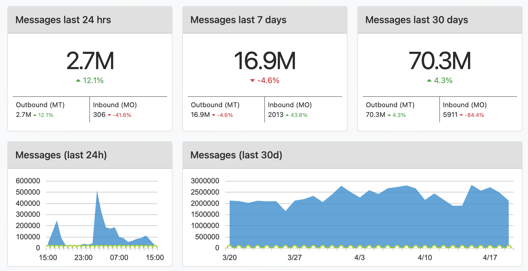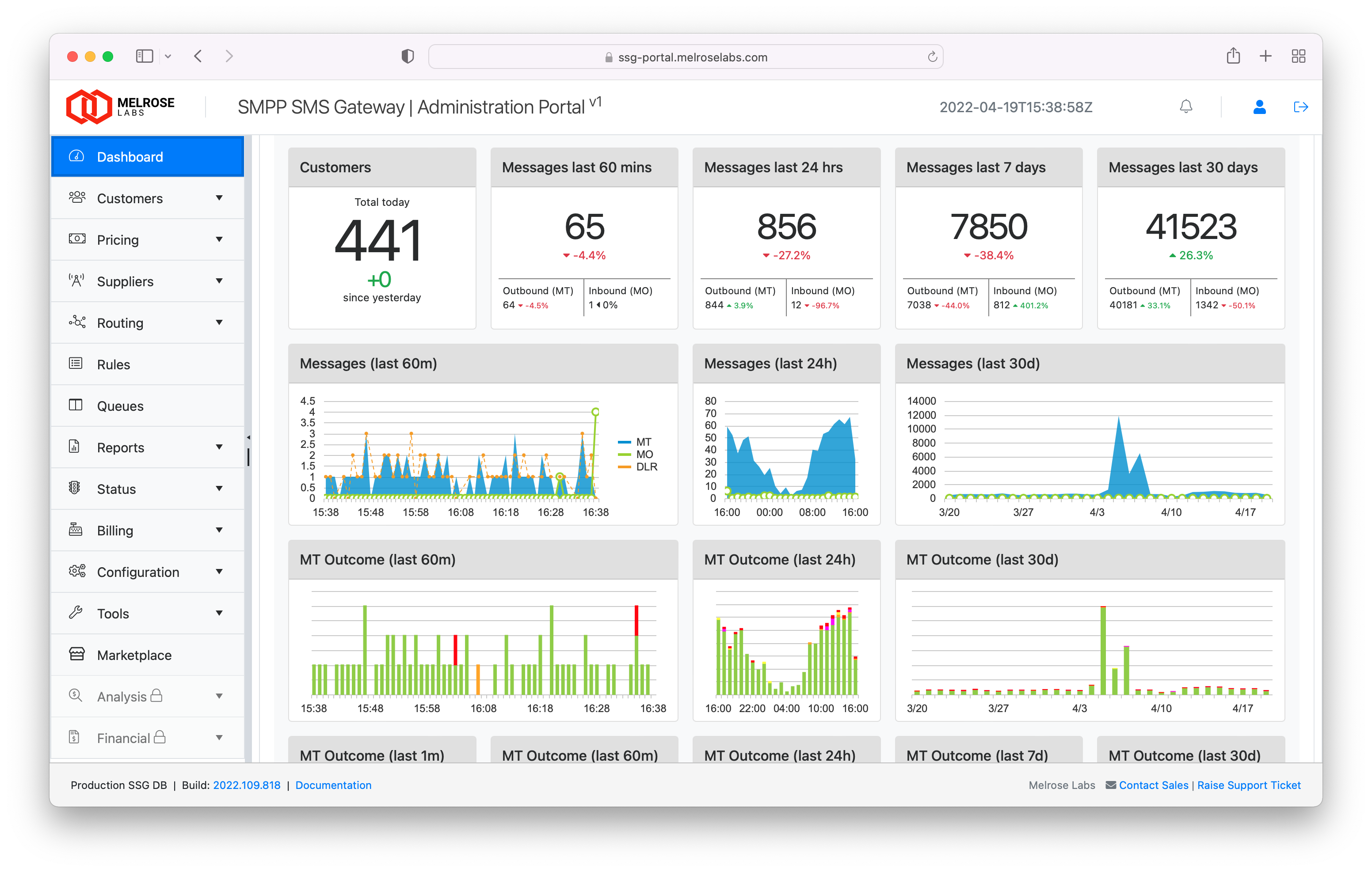 The SMPP SMS Gateway (SSG) cloud platform enables the operation of a highly reliable, highly capable and technically sophisticated SMS gateway. Organisations using the SSG can manage customers, perform prepay and postpay billing, manage supplier SMSC/SMS gateway connections, perform routing, and get detailed reporting and analysis on SMS traffic.
