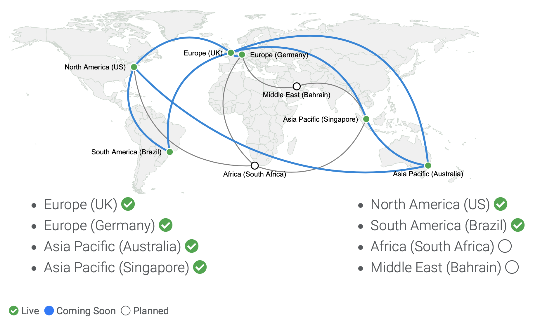 The SSG platform is comprised of a front-end administration portal and back-end messaging infrastructure located globally. The map below shows the locations of SSG messaging infrastructure. Access to the platform for sending and receiving messages takes place via the SSG Endpoints.